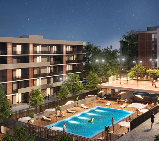 In Dighomi, an area previously known for its industrial buildings, new residential complexes are being built, and with these, new life is being breathed into the area. Archi Rivertown is a stunning new complex located in an ideal strategic location within this highly desirable district. For those wondering how to invest in real estate, this development offers an excellent opportunity — featuring a swimming pool, recreational areas, lounge, fitness and spa, and even a sports field for the residents.